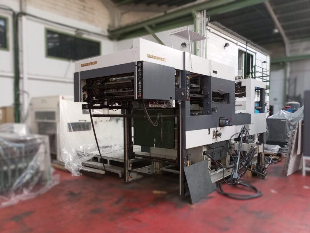 1990 BOBST SP102-CE Packaging 1990 BOBST SP102-CE DESCRIPTION OF MACHINE: Stripping deviceNon stop feeder and deliveryElectronic feeder pile alignment with permanent pile positioningCenterline MicrometronicPaper and cardboard grammage range from 80 to 1000 g/m2Solid board up to 2.000 grs/m2Corrugated up to 4 mm Raised,Max speed 10.000 shp Cleaned, checked and tested DOWNLOAD TECHNICAL SHEET Contact Contact us Keep up to date with our news Email Send Where are we C/Aljibe, 4 Pol. Ind. Carretera La Isla 41703 Dos Hermanas (Sevilla) Telephone Tfno: +34 955 676 098 E-mail multi@multigraphic.es